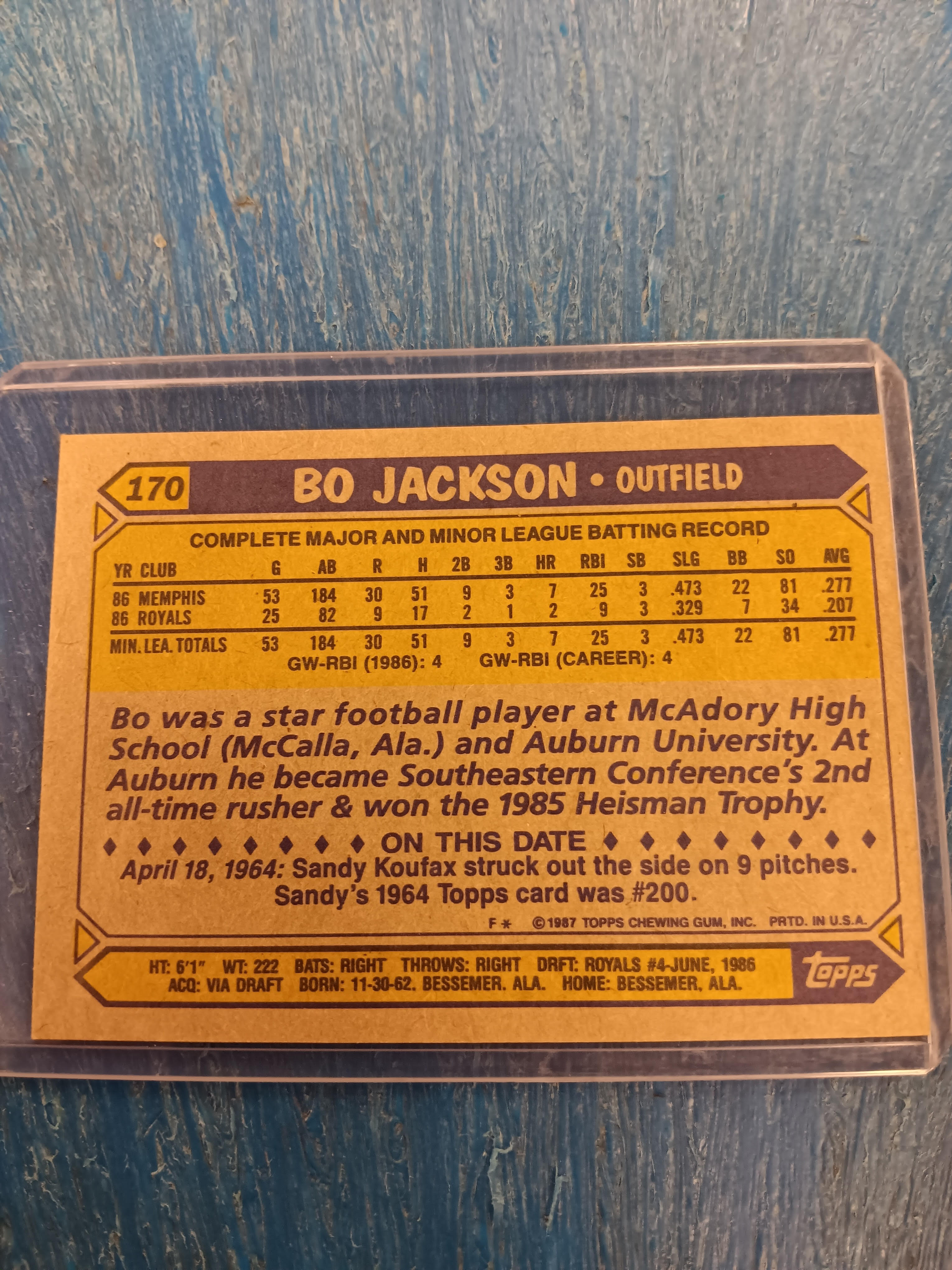 1987 Topps #170 Bo Jackson Future Stars Rookie Card 1987 Topps #170 Bo Jackson Future Stars Rookie Card